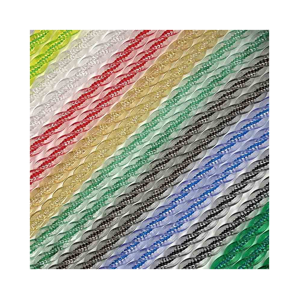 Cortina de cordón exterior antimoscas en varios colores. Fabricadas en PVC de gran calidad con una formulación especial con aditivos ultravioletas para una mayor resistencia al deterioro de los colores y un antioxidante que protege los colores transparentes del típico amarilleo dándole un tacto con mayor suavidad.