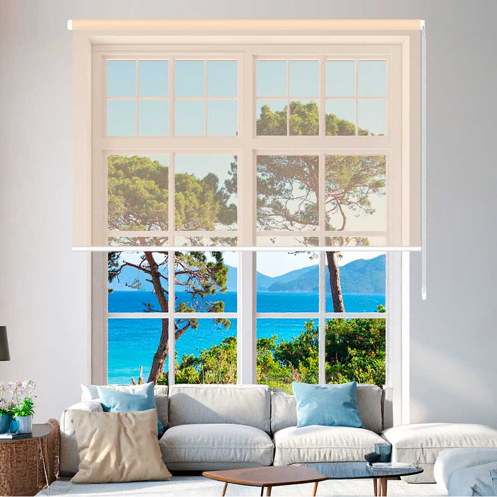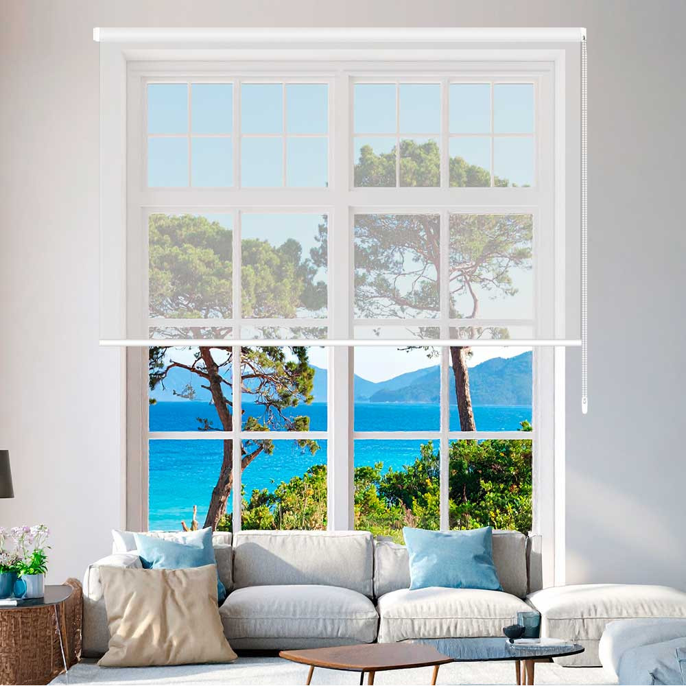 El estor screen Creta está confeccionado con tejido screen, un tejido vanguardista que durante el día deja entrar la luz y nos permite ver hacia afuera, al tiempo que nos protege de los rayos solares UV. Es un tejido que contribuye a conservar la temperatura ambiente en el interior.