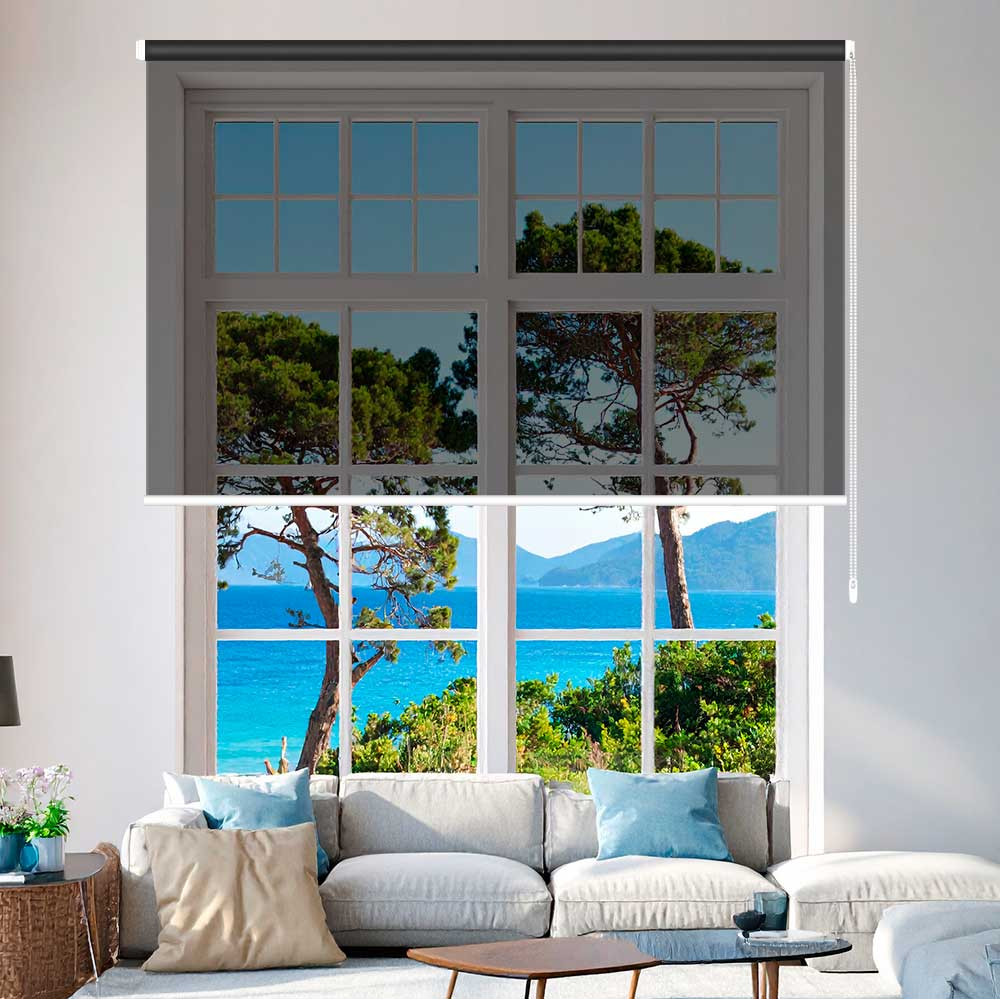 El estor Egeo-Creta-Mirtos a medida es un estor enrollable con el sistema de montaje Supreme 38mm y el tejido screen 5% de apertura